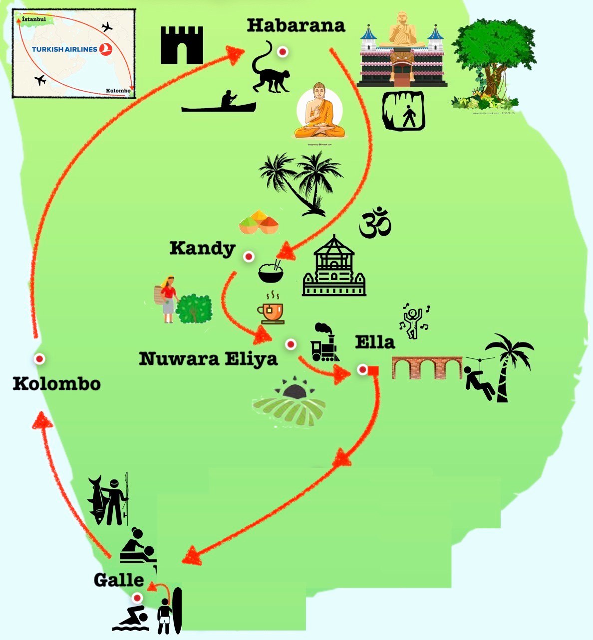 Sri Lanka Maldivler yolculuğumuzun ilk durağı İstanbul. Cuma gecesini cumartesi gününe bağlayan saatlerde bizi direkt olarak Kolombo’ya götürecek Türk Hava Yolları uçağında yerimizi alacağız. Uzun bir yolculuk bizleri bekliyor. Sağlam bir uyku da iyi olur ama uçakta uyuyamam derseniz iç savaşı anlatan ve Sri Lanka yakın tarihinden izler bulabileceğiniz The Road from Elephant Pass filmini izlemenizi öneririz.